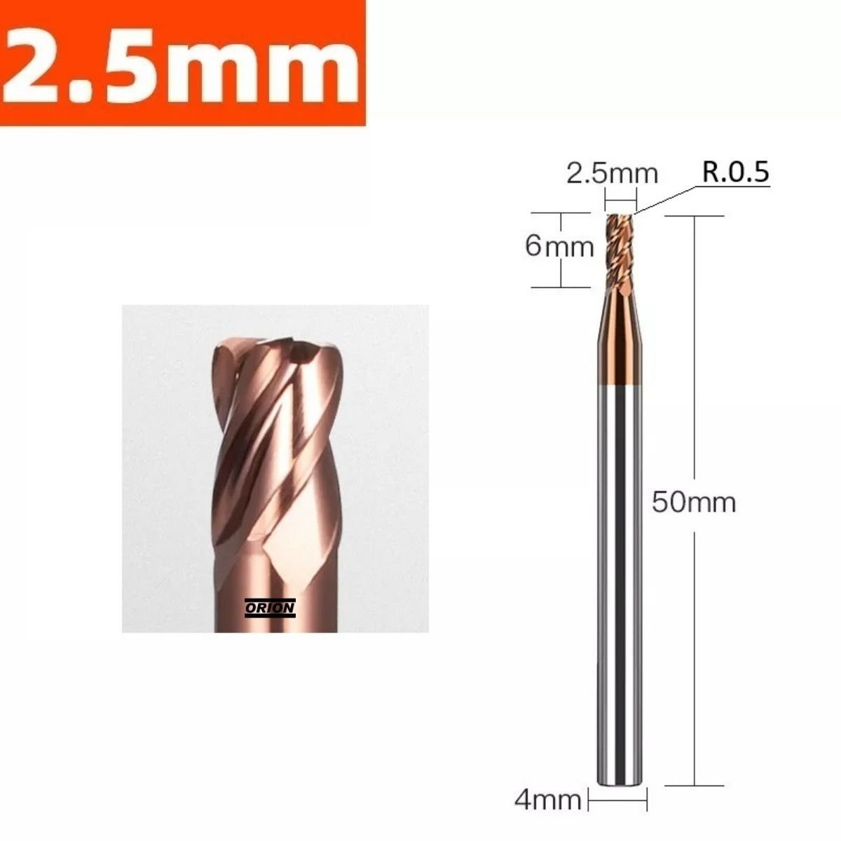 fresa toroidal R0,5 metal duro 4 cortes 02,5x06x50xh4 TiSiN: