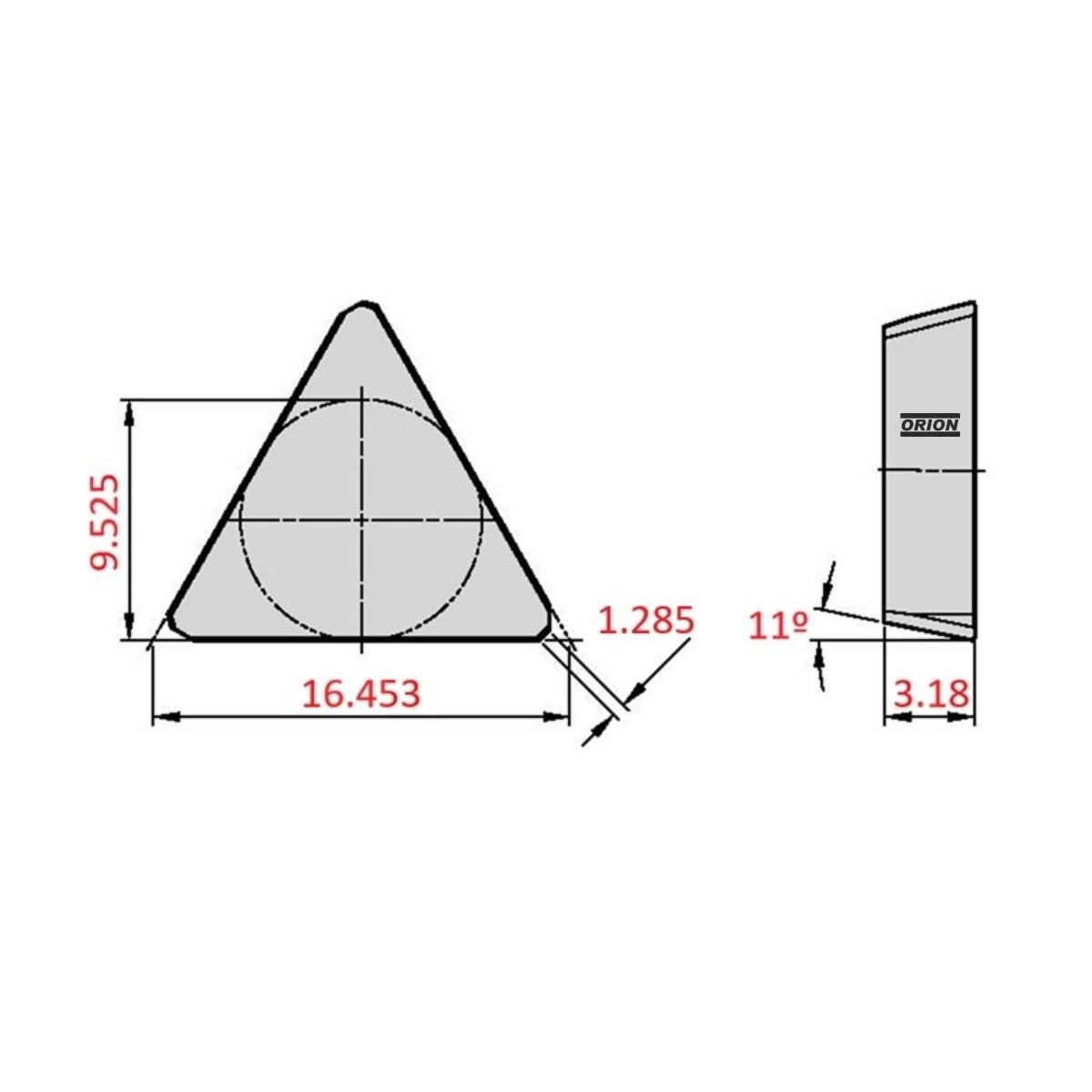 .tamanho da aresta da pastilha: 16,453 mm;