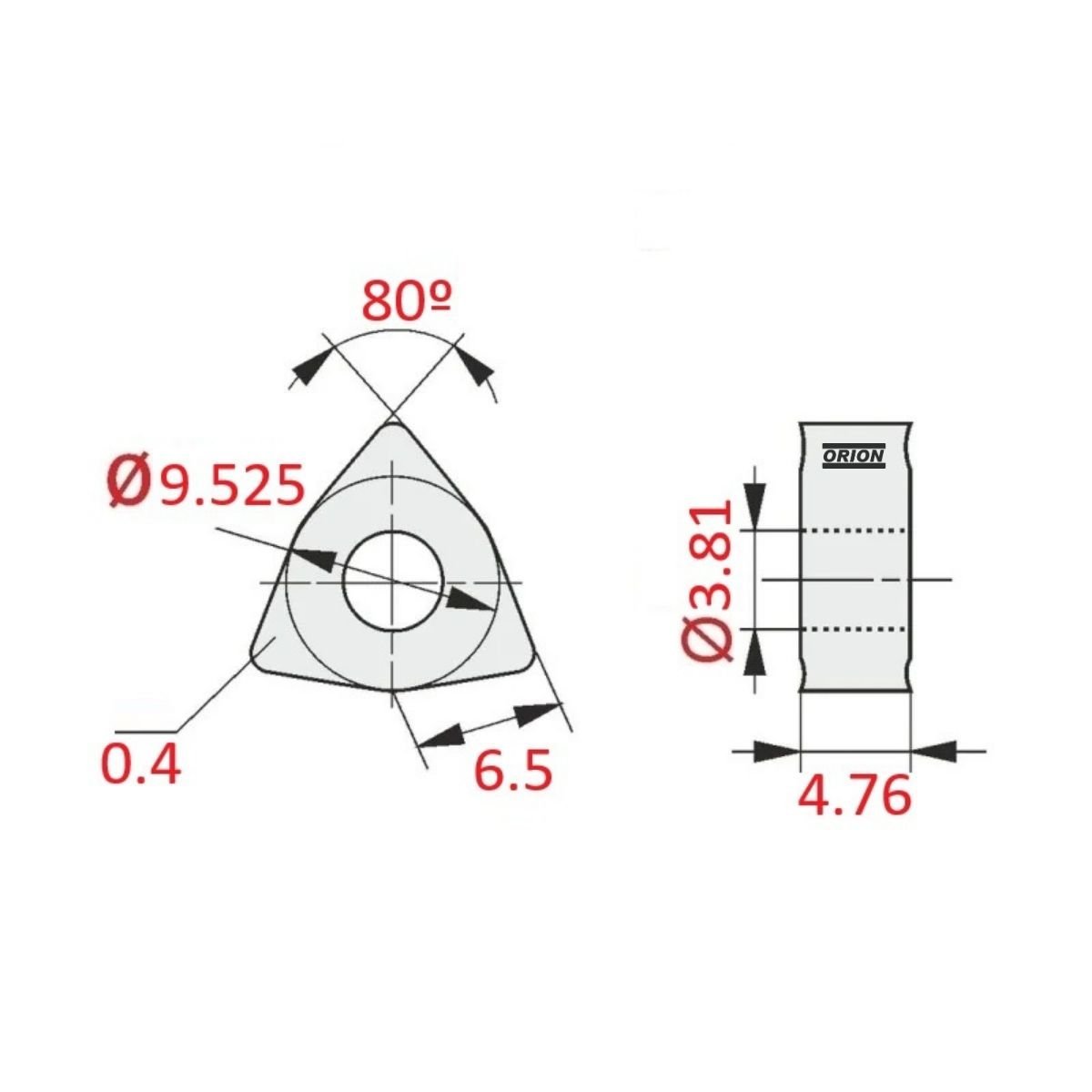 .tamanho da aresta da pastilha: 6,5 mm;