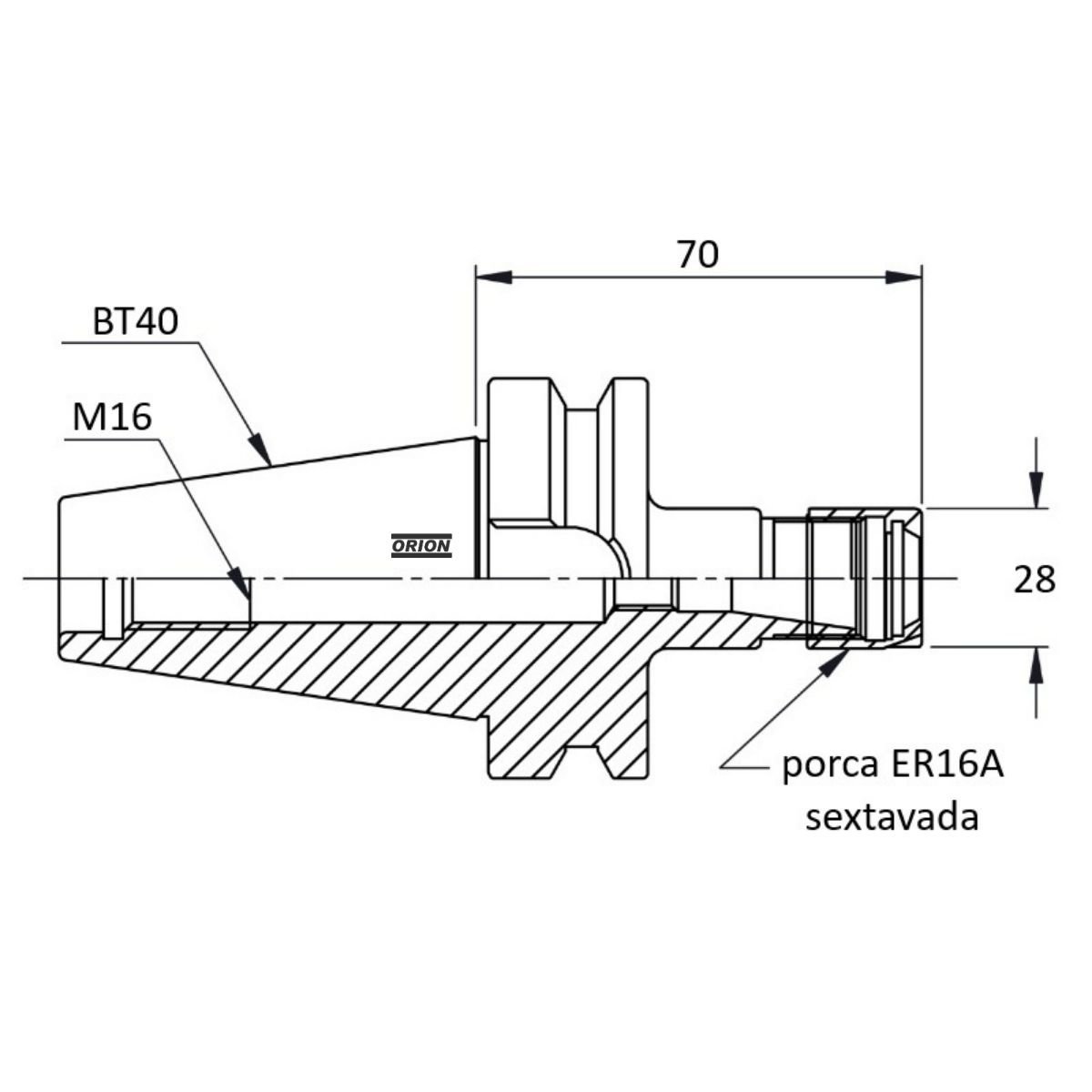 mandril porta pinças er16 bt40 L 070 mm: