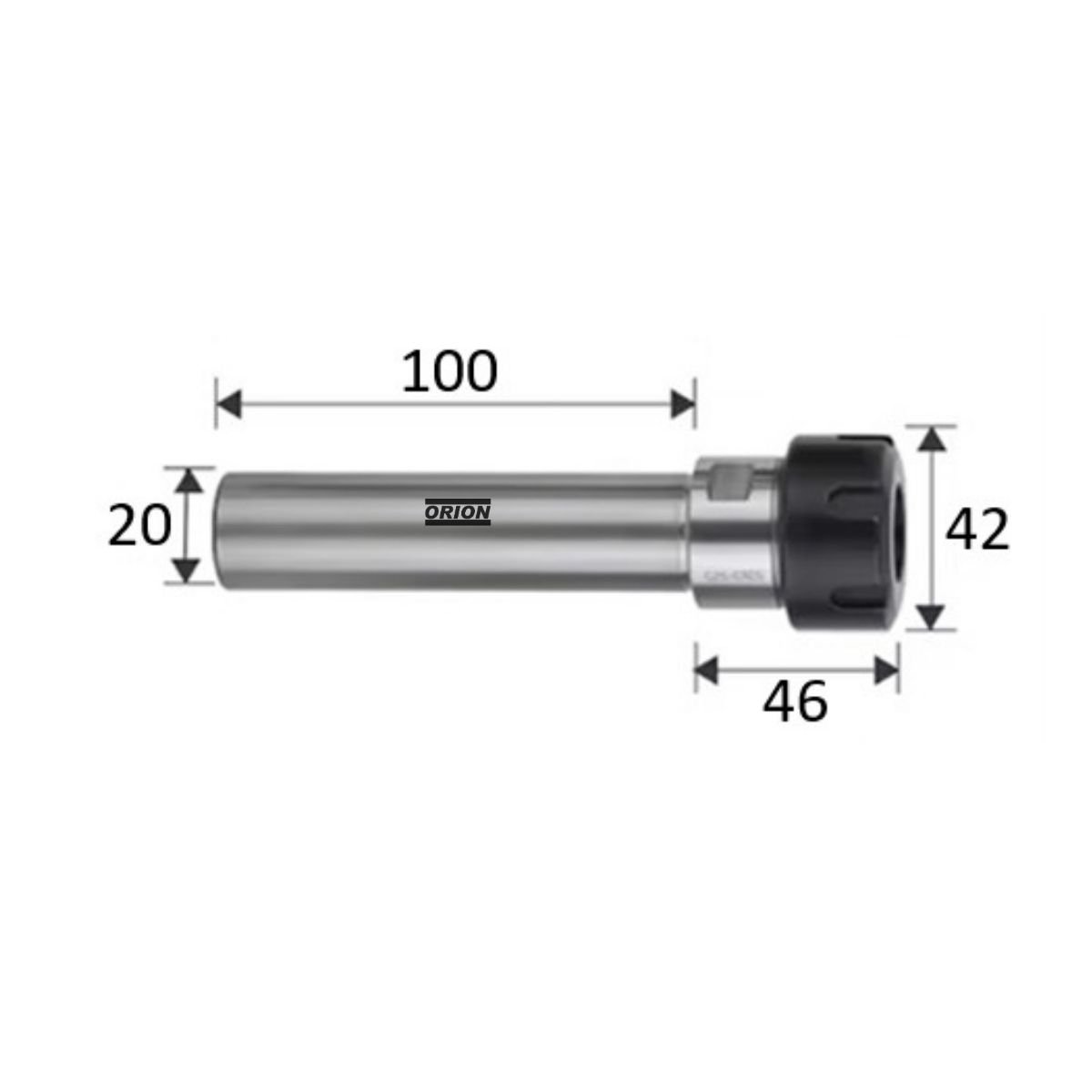 mandril porta pinças er25 haste paralela 20×100 mm:
