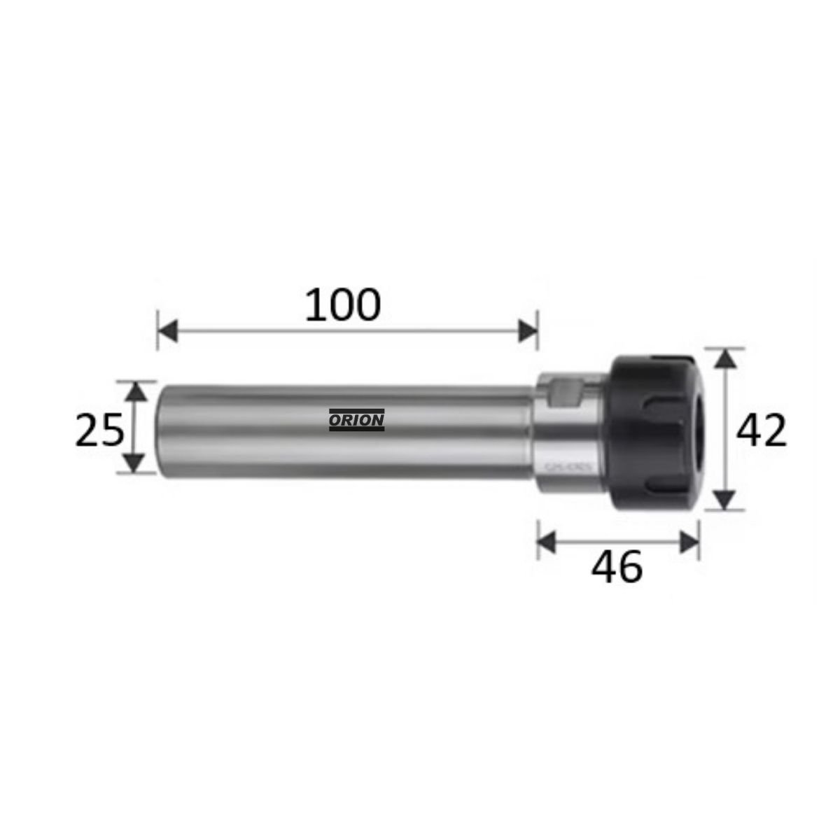 mandril porta pinças er25 haste paralela 25×100 mm: