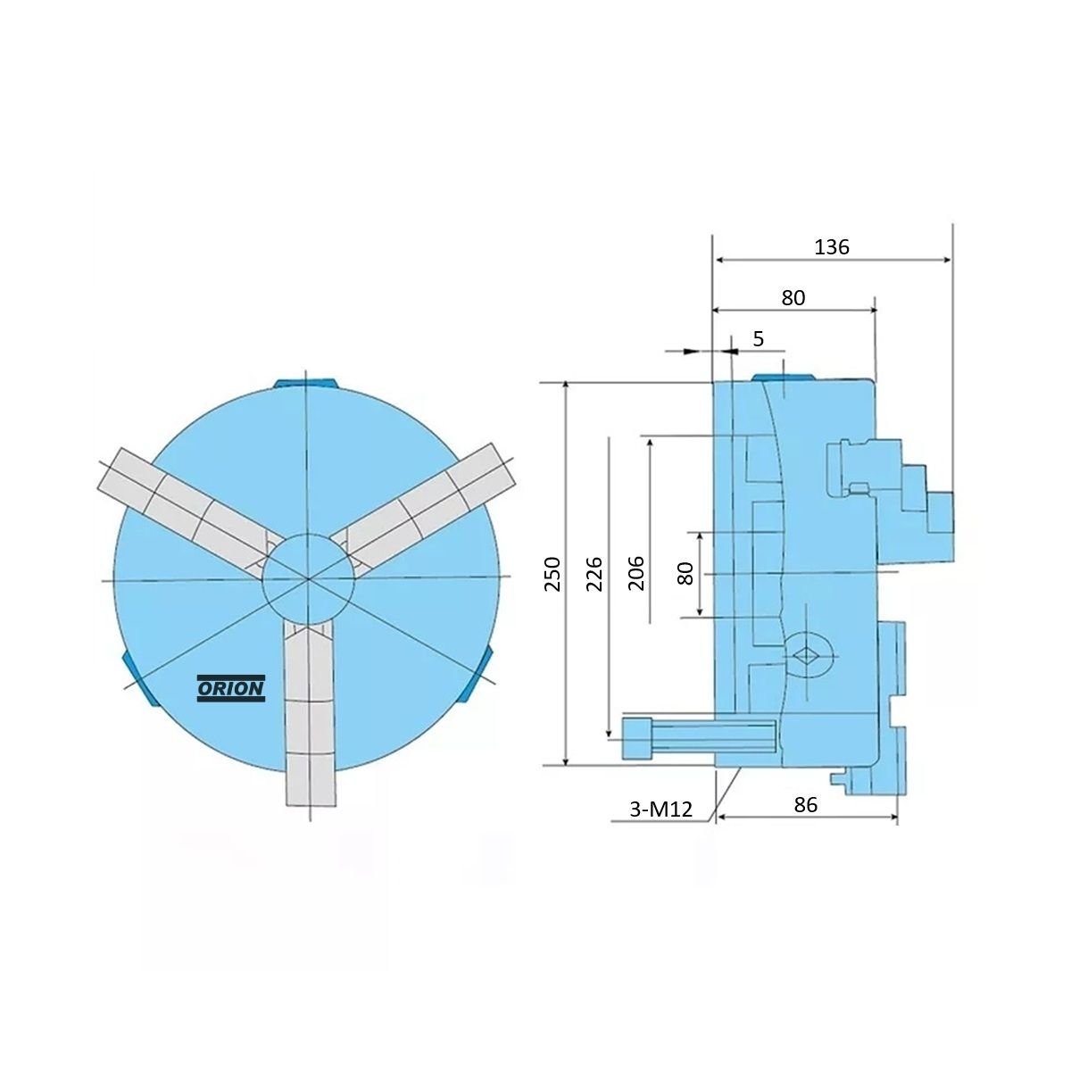 13316-placa de torno universal 3 castanhas 250 mm fixaçao frontal