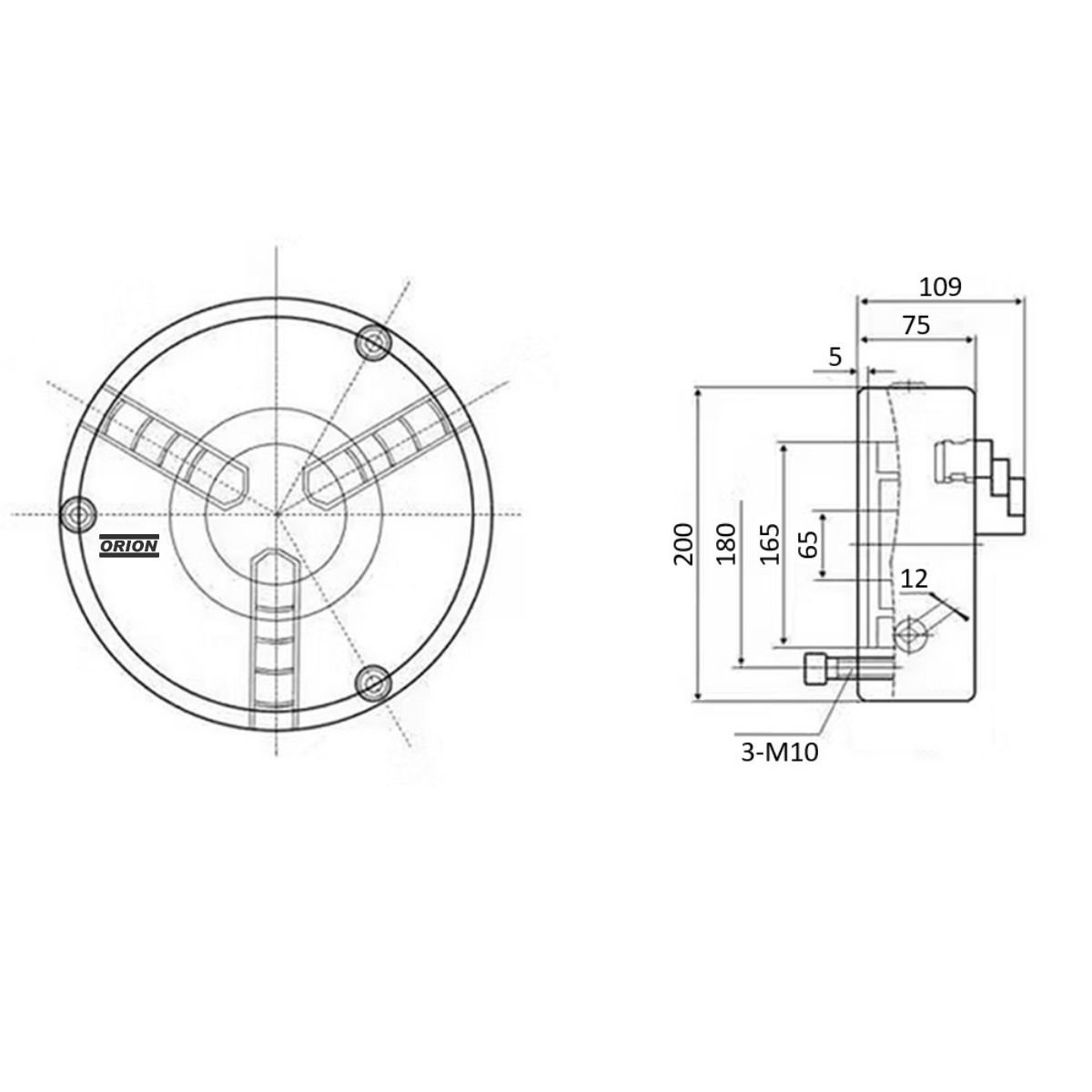 13315-placa de torno universal 3 castanhas 200 mm fixaçao frontal