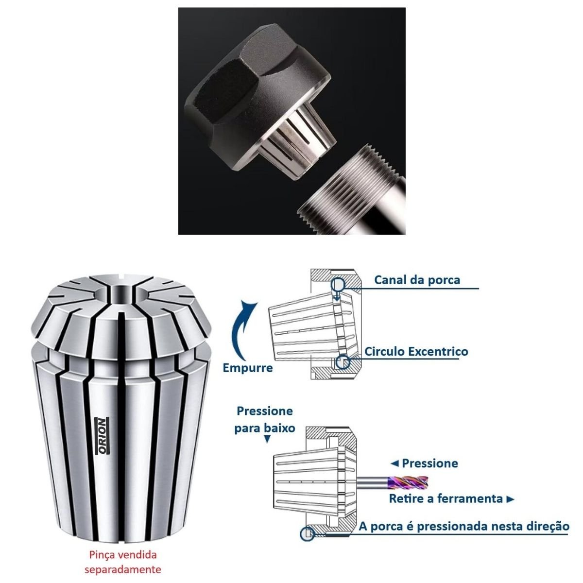 A Porca ER11 é um componente crucial utilizado em sistemas de fixação de ferramentas, especialmente em mandris porta-pinças. Este acessório é projetado para fornecer uma conexão segura e estável entre a pinça e o mandril, garantindo eficiência e precisão durante o processo de usinagem. A Porca ER11 é essencial para garantir que as ferramentas permaneçam firmemente instaladas durante o funcionamento, contribuindo para a segurança e a qualidade do trabalho realizado.