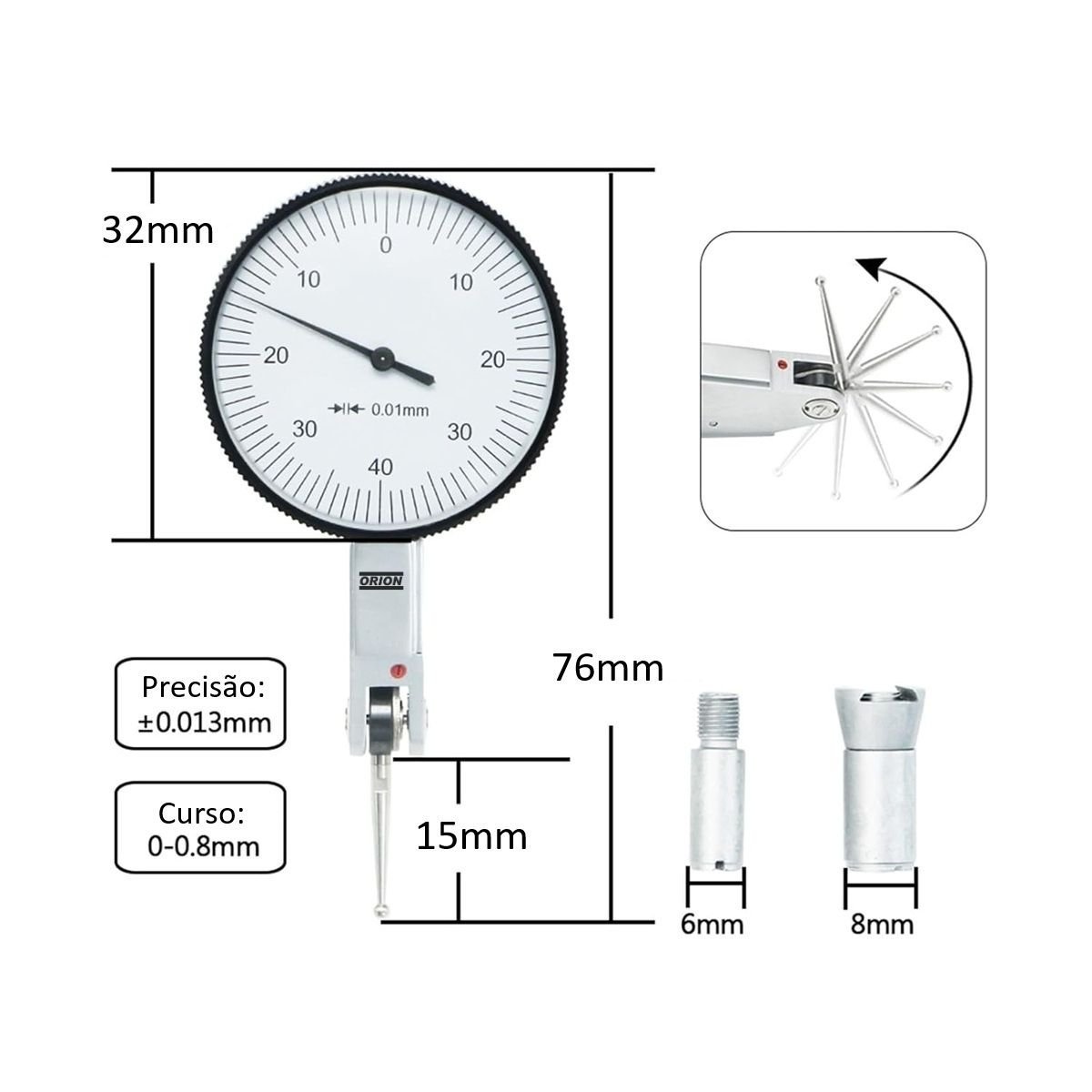 relogio apalpador 0,8 mmxgraduaçao 0,01 mm: