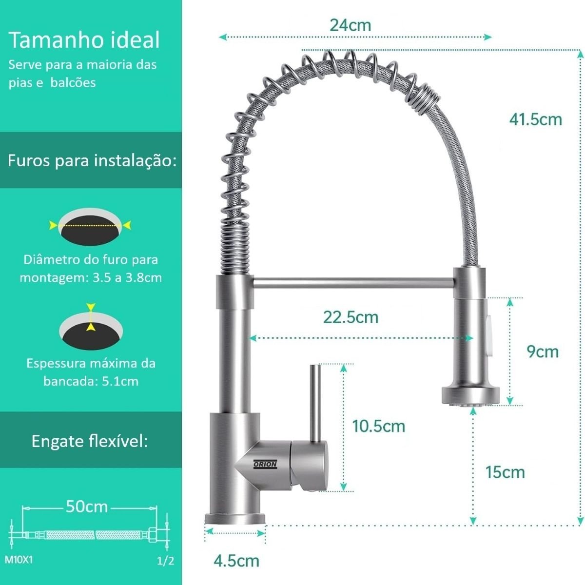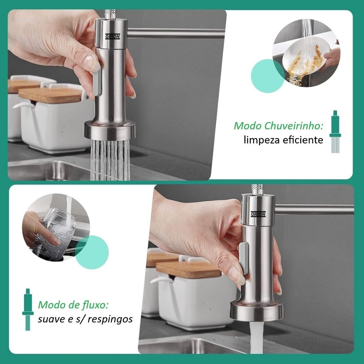 .mangueira flexível, onde é possível realizar lavagem de vegetais, limpar a pia, enquanto lava a louça.