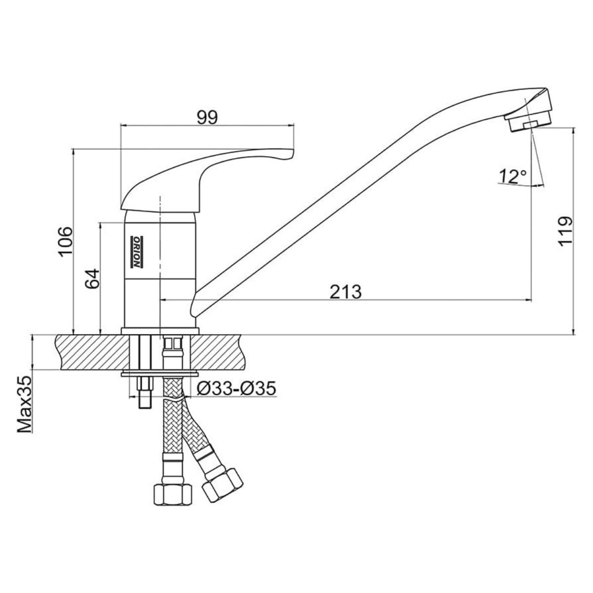 .dimensões do produto: altura: 19,3 cm, largura: 5 cm, furação da bancada: 3,5 cm;